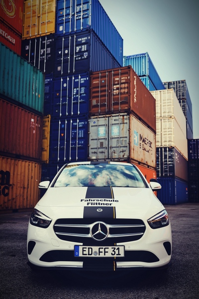 Die Mercedes B-Klasse eignet sich perfekt als Fahrschulauto. Super übersichtlich, einfach zu fahren, angenehme Sitze und tolles Lenkverhalten. Hey und im Flittner Kostüm sieht sie sogar recht sportlich aus.