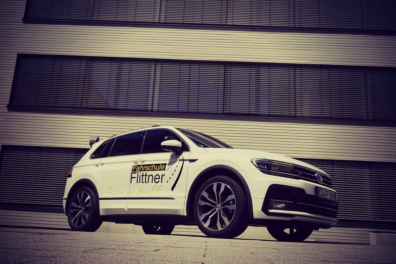 Der Volkswagen Tiguan. Sportlich, kräftig und edel in einem Fahrzeug vereint. Mit dem R-Line Paket machst du einen richtig fetten Auftritt. Dank großzügiger Fensterflächen und der Rückfahrkamera übersichtlich und somit optimal für die Führerscheinausbildung der Klassen Anhänger, BE, B96 geeignet. Außerdem setzt die Fahrschule Flittner dieses Fahrzeug für den B Schaltführerschein ein. Die hohe Sitzposition bietet hier einen perfekten Überblick über Erdings Straßen.